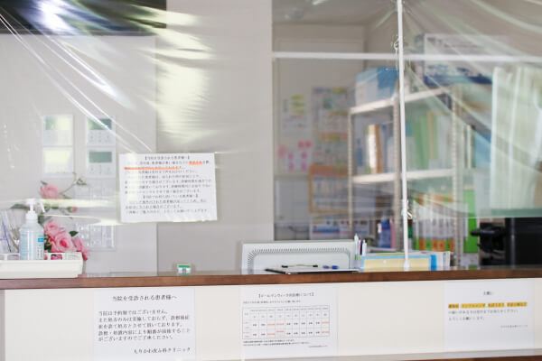 受付にビニールのシートを貼らせて頂きました。少し声が聞こえにくくなるかもしれませんが、ご理解のほどよろしくお願いします。